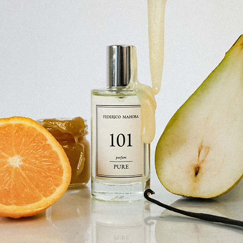 PURE 101 ist ein sinnliches Zusammenspiel aus zarter Orangenblüte und saftiger Birne, das die Sinne betört. Herznoten von würzigem Ingwer und mystischem Weihrauch verleihen der Komposition eine aufregende Tiefe. In der Basis entfalten sich warme Noten von Sandelholz, süßer Vanille und Honig, umhüllt von sanftem Moschus. Ein Duft, der Leidenschaft und Eleganz in jedem Moment entfaltet.